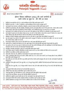 एलोपैथी को स्टुपिड और दिवालिया कहने वाले योग गुरु बाबा रामदेव ने मामला गरमाने के बाद अफसोस जताते हुए अपनी टिप्पणी वापस ले तो ली है, मगर अब वह पलटवार के मूड में भी आ गए। उन्होंने आज शाम इंडियन मेडिकल एसोसिएशन (आईएमए) और फार्मा कम्पनियों से 25 सवाल पूछते हुए पत्र भी जारी कर दिया है। इस पत्र की कॉपी संलग्न है-