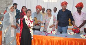 वार्ड 48 की निवासी भगवती महावर कोटा यूनिवर्सिटी में एमएम फाइनल में हाड़ोती में टॉप रही हैं। इस पर उन्हें राज्यपाल द्वारा 28 फरवरी को गोल्ड मेडल से सम्मानित किया जाएगा। इसके चलते समारोह में भगवती को अतिथियों ने माला पहनाकर और स्मृति चिह्न देकर सम्मान किया।