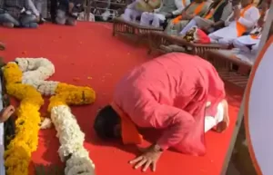 सतीश पूनिया ने मंच से ढोक लगा कर आभार जताया