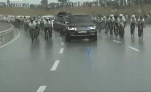 नौरंगदेसर में योजनाओं का लोकार्पण-शिलान्यास करने के बाद पीएम नरेन्द्र मोदी साइकिल सवारों के साथ सभा स्थल तक पहुंचे थे।