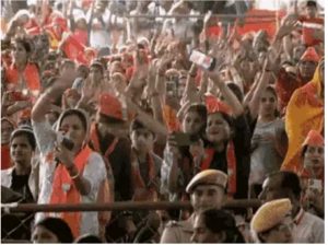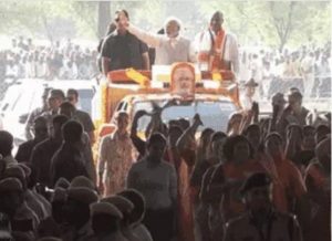 प्रधानमंत्री नरेन्द्र मोदी ने सभा के लिए मंच तक करीब 700 मीटर का सफर ओपन जीप में किया। उन्होंने कुछ लोगों को सैल्यूट भी किया।