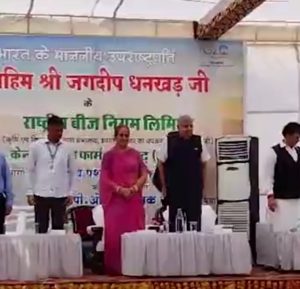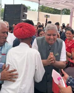 जोधपुर के काजरी में किसान और वैज्ञानिकों के साथ संवाद कार्यक्रम था। इसमें उपराष्ट्रपति जगदीप धनखड़ अपनी पत्नी सुदेश धनखड़ के साथ शामिल हुए।