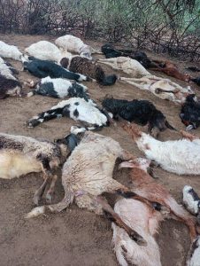 बाड़मेर। जिले में रविवार को कुदरत का कहर देखने को मिला है। सुबह से ही मौसम का मिजाज बदल गया था। कई इलाकों में रुक-रुक कर बारिश शुरू हो गई थी। यहां सेड़वा गांव में आकाशीय बिजली गिरने से बड़ी संख्या में भेड़-बकरियों की मौत हो गई। इनकी संख्या करीब सौ बताई गई है। कुदरत के इस कहर से पशुपालकों को भारी नुकसान हुआ है। पीड़ित पशुपालक जानू खान ने बताया कि उसके खेत में बने बाड़े पर आकाशीय बिजली गिरने से वहां बंधी हुई 95 भेड़-बकरियों की मौत हो गई।