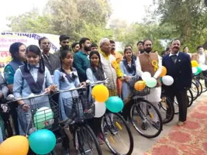 9वीं क्लास की बच्चियों को बांटी साइकिल