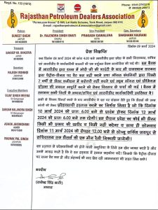 राजस्थान पेट्रोलियम डीलर्स एसोसिएशन के अध्यक्ष राजेन्द्र सिंह भाटी ने कहा कि हमारा आंदोलन आमजन को महंगाई से राहत दिलाने के लिए है। फिर भी सरकार हमारी मांगों पर विचार नहीं करती है तो हमें अनिश्चितकालीन बंद जैसा कड़ा कदम उठाने पर मजबूर होना पड़ेगा। इसलिए सरकार से समय रहते वेट कम करने की अपील है।