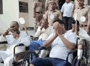 पुलिस आरोपियों को मीडिया के सामने लाई तो इनमें से 4 के पैरों पर प्लास्टर चढ़े हुए थे। व्हील चेयर पर 1, 2, 3 और 4 नम्बर की तख्ती थी। उस पर बैठे हुए आरोपी हाथ जोड़कर कह रहे थे-‘माफी साहब’।