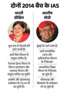 आशीष मोदी सामाजिक न्याय और अधिकारिता विभाग के निदेशक हैं, जबकि भारती दीक्षित वित्त विभाग में संयुक्त सचिव हैं। दोनों जयपुर में ही पोस्टेड हैं। आशीष कई जिलों में कलेक्टर भी रहे हैं।