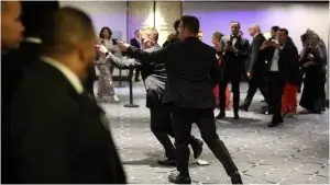 अब ऑनलाइन कई ऐसे वीडियो सामने आए हैं, जिनमें सीक्रेट सर्विस के एजेंटों को ट्रम्प, फर्स्ट लेडी मेलानिया ट्रम्प और उपराष्ट्रपति जेडी वेंस को सुरक्षित बाहर निकालते हुए दिखाया गया है। वाशिंगटन हिल्टन होटल के बैंक्वेट हॉल में सीक्रेट सर्विस और अन्य सुरक्षा एजेंसियों के अधिकारी तेजी से फैल गए, जबकि मेहमान डर के मारे मेजों के नीचे छिप गए।